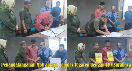 Setelah dari PDU Jambangan rombongan menuju ke Kampus UPN Surabaya untuk penandatanganan MoU antara Pemdes Tegaren dengan pihak UPN Surabaya, dalam ikut serta pengembangan dan pembangunan Desa Tegaren. Dari kunjungan tersebut kami berharap bisa diterapkan proses pengolahan sampah di desa kami secara bertahap dan semoga kegiatan tersebut bermanfaat untuk desa kami kedepannya.