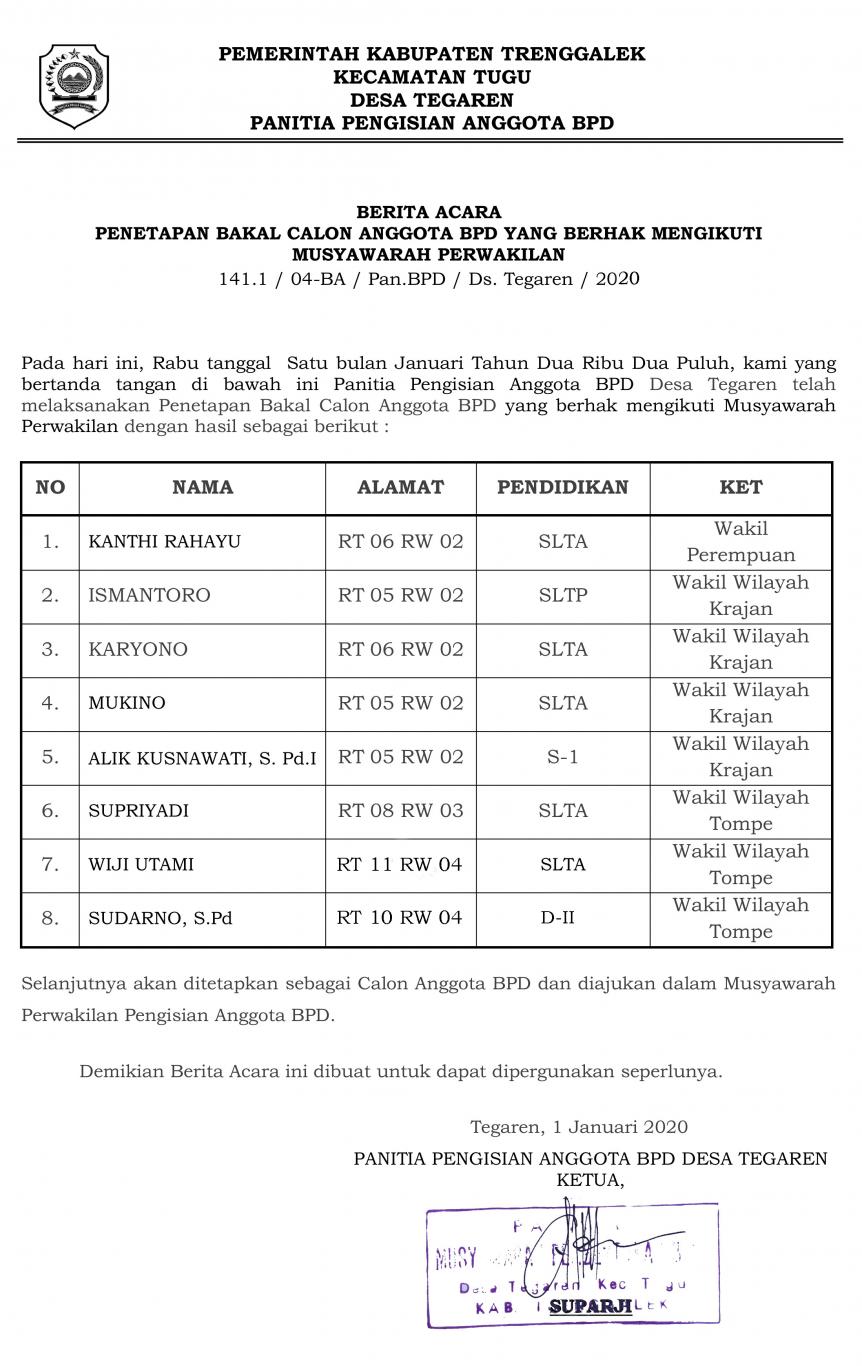 Selanjutnya akan ditetapkan sebagai Calon Anggota BPD dan diajukan dalam Musyawarah Perwakilan Pengisian Anggota BPD.