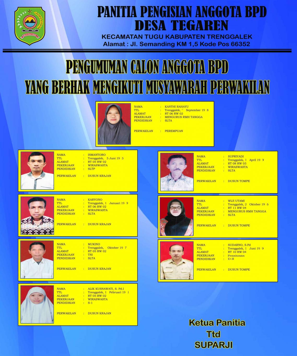 - - Untuk Keterwakilan Wilayah Dusun Krajan, jumlah Kuota 2 orang yang mendaftar 4 orang.
