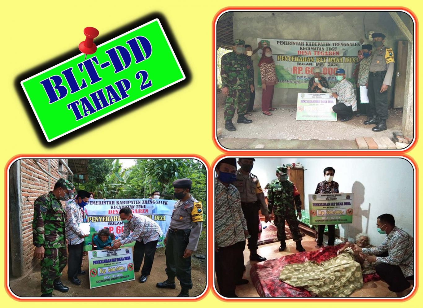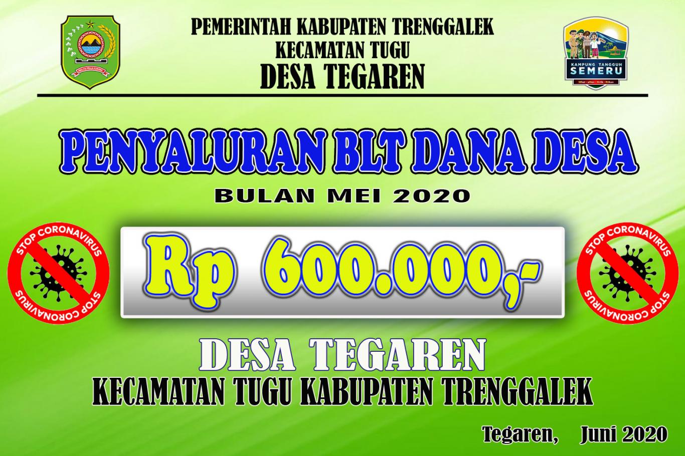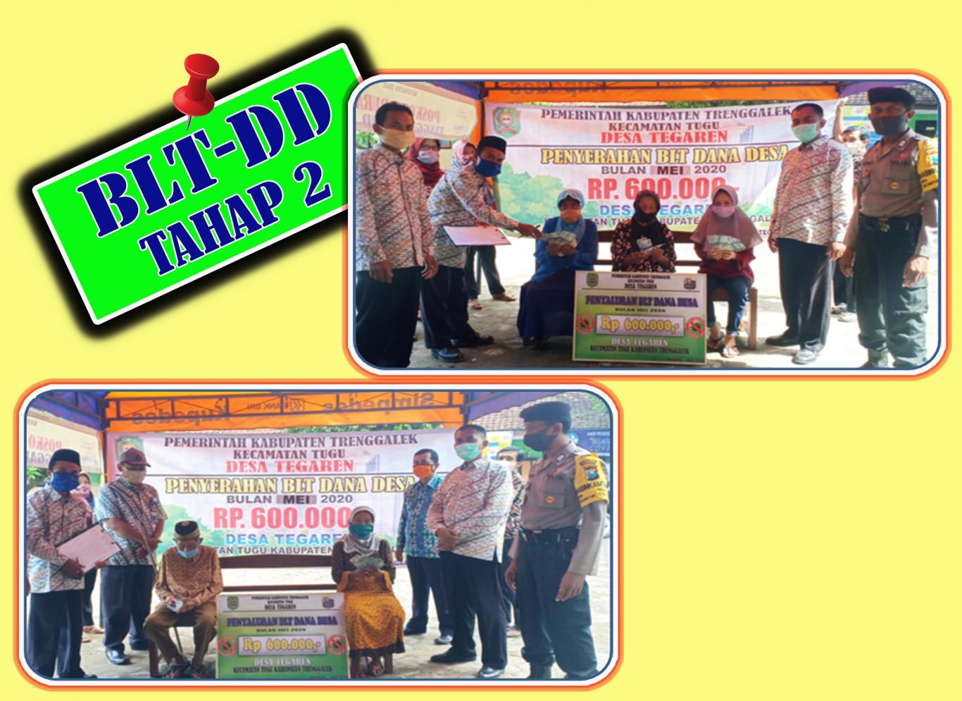 Kamis (04/06/2020) Pemdes Tegaren telah melaksanakan penyaluran BLT-DD Tahap 2 (penyaluran untuk bulan Mei). Penyaluran kali ini ada pengurangan KPM, yang semula 11 orang menjadi 8 orang. Disebabkan karena ada penerimaan ganda dari bansos lainnya yaitu 2 orang mendapat BSP dan 1 orang mendapat BST. Penyaluran tersebut dihadiri oleh Camat Tugu dan staf, Babinsa, BKTM, BPD.